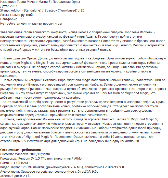 Скачать игру Герои Меча и Магии 5: Повелители Орды бесплатно